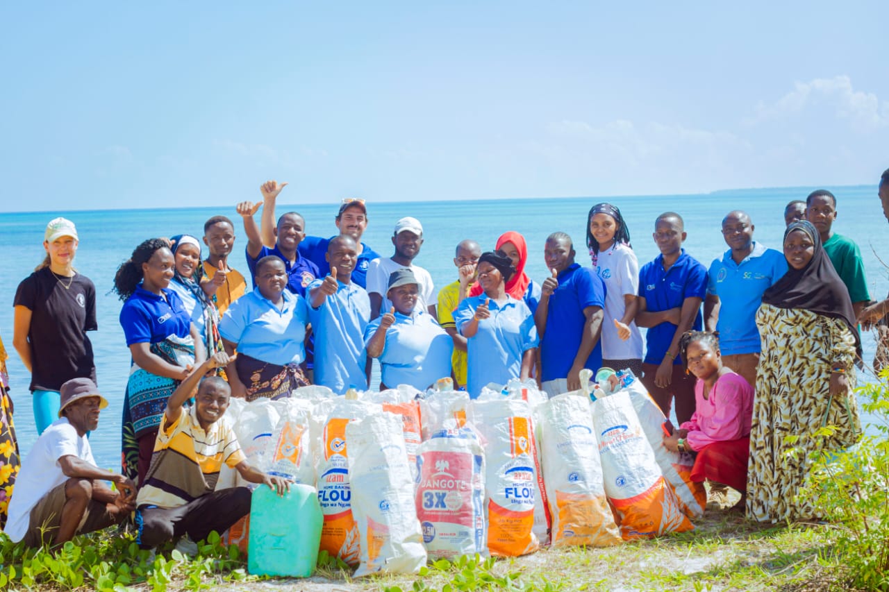 A strong show of teamwork as community members clean up plastic waste from the shoreline.